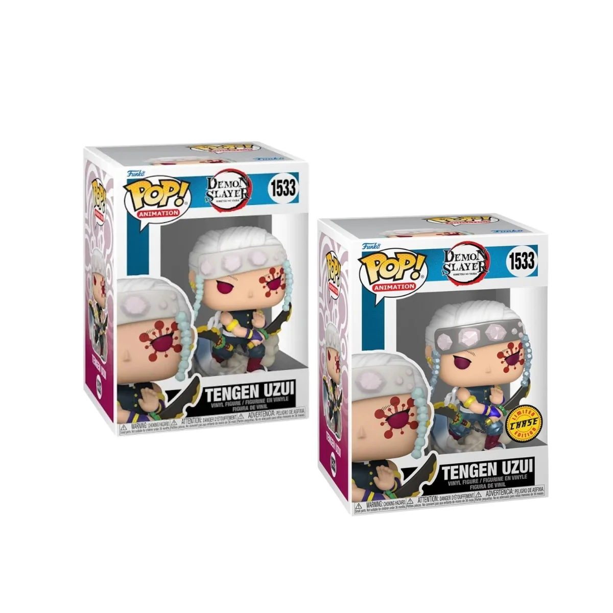 Funko Tengen Uzui Bundle. Cuando hablamos de presencia, carisma y poder, Tengen Uzui lo tiene todo. Este Funko Pop! 1533 Bundle – Demon Slayer te trae al extravagante Pilar del Sonido en sus dos versiones: regular y Chase, en un pack que brilla por su dinamismo, detalles y exclusividad.