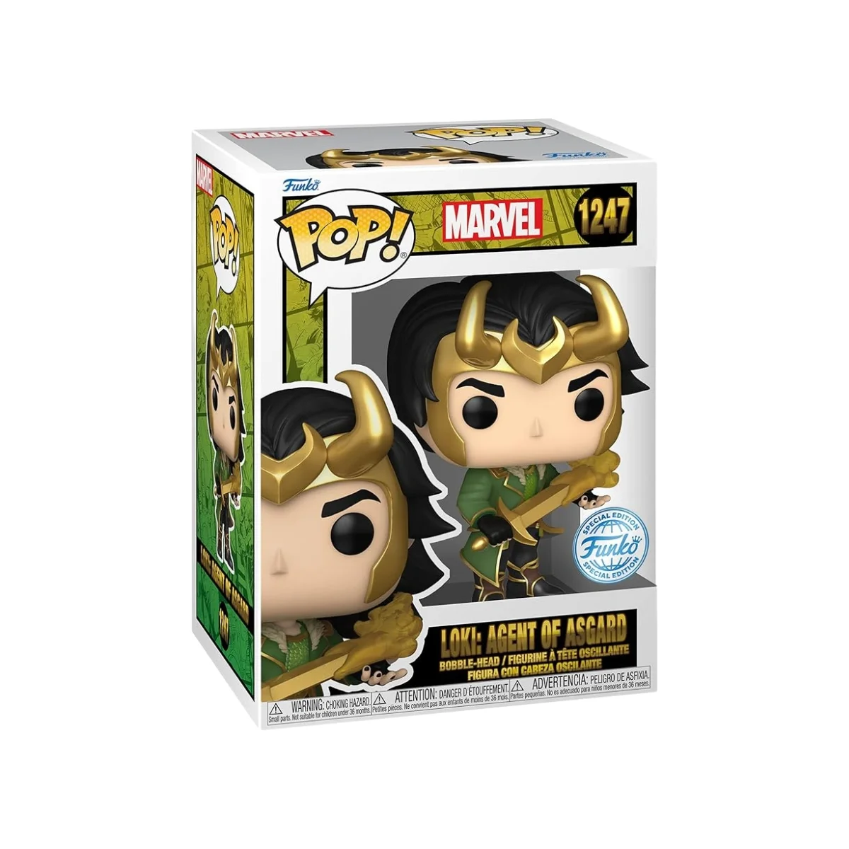 Funko Loki Agente Asgard. Loki siempre ha sido un personaje cambiante, escurridizo, complejo… pero en la serie de cómics Agente de Asgard, el Dios del Engaño da un paso más allá y se convierte en algo distinto: un antihéroe con estilo propio. El Funko POP! Loki: Agente de Asgard #1247 rinde homenaje a esa evolución, trayendo una versión más elegante, misteriosa y refinada del hijo de Odín. Este Funko exclusivo está diseñado para los fans que adoran las facetas más inesperadas del universo Marvel.