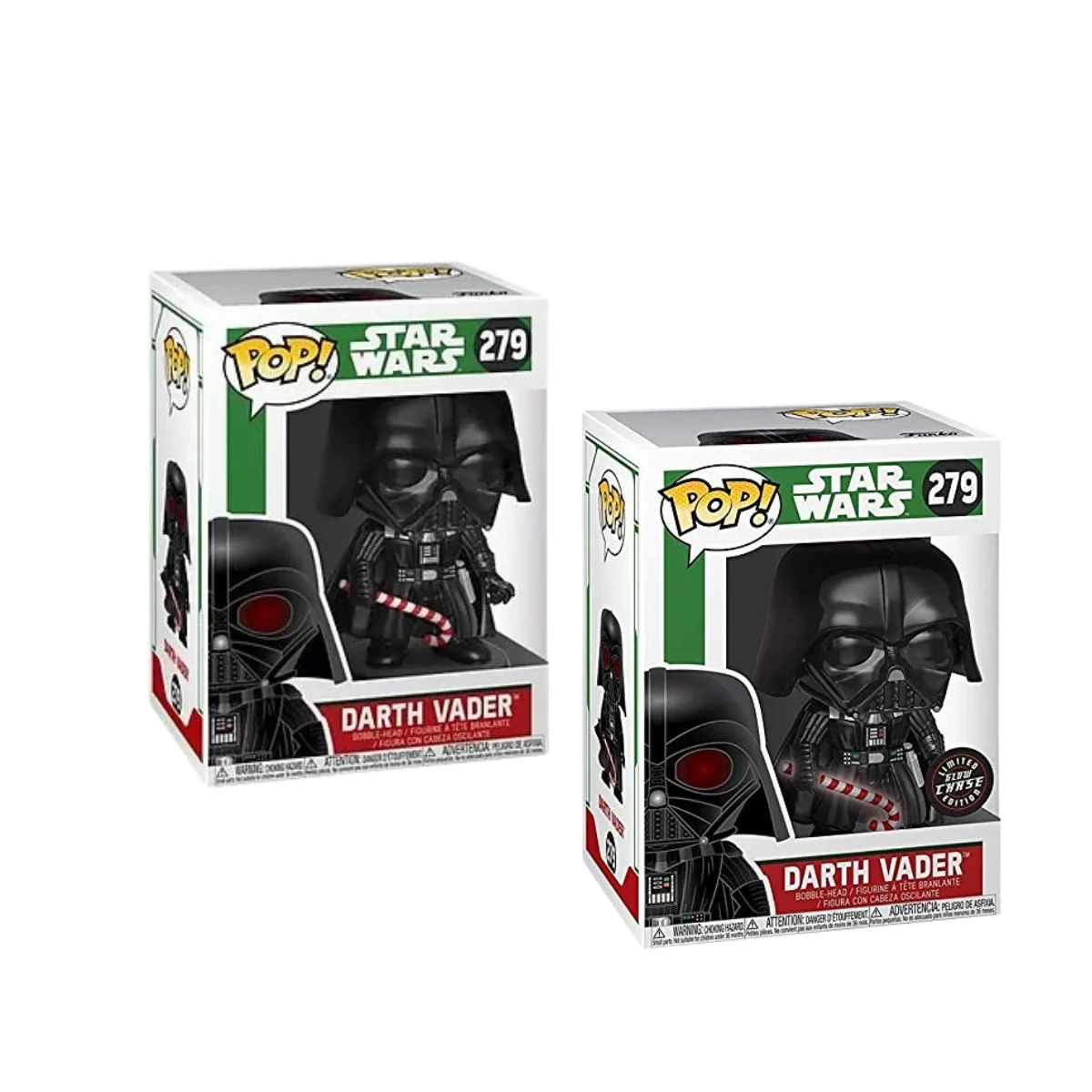 La figura regular muestra a Vader en un festivo traje con detalles navideños, manteniendo su imponente presencia pero con un toque divertido. En cambio, la versión Chase añade un diseño alternativo que convierte esta edición limitada en una pieza aún más deseada por fans de Star Wars y coleccionistas de Funko Pop! por igual.