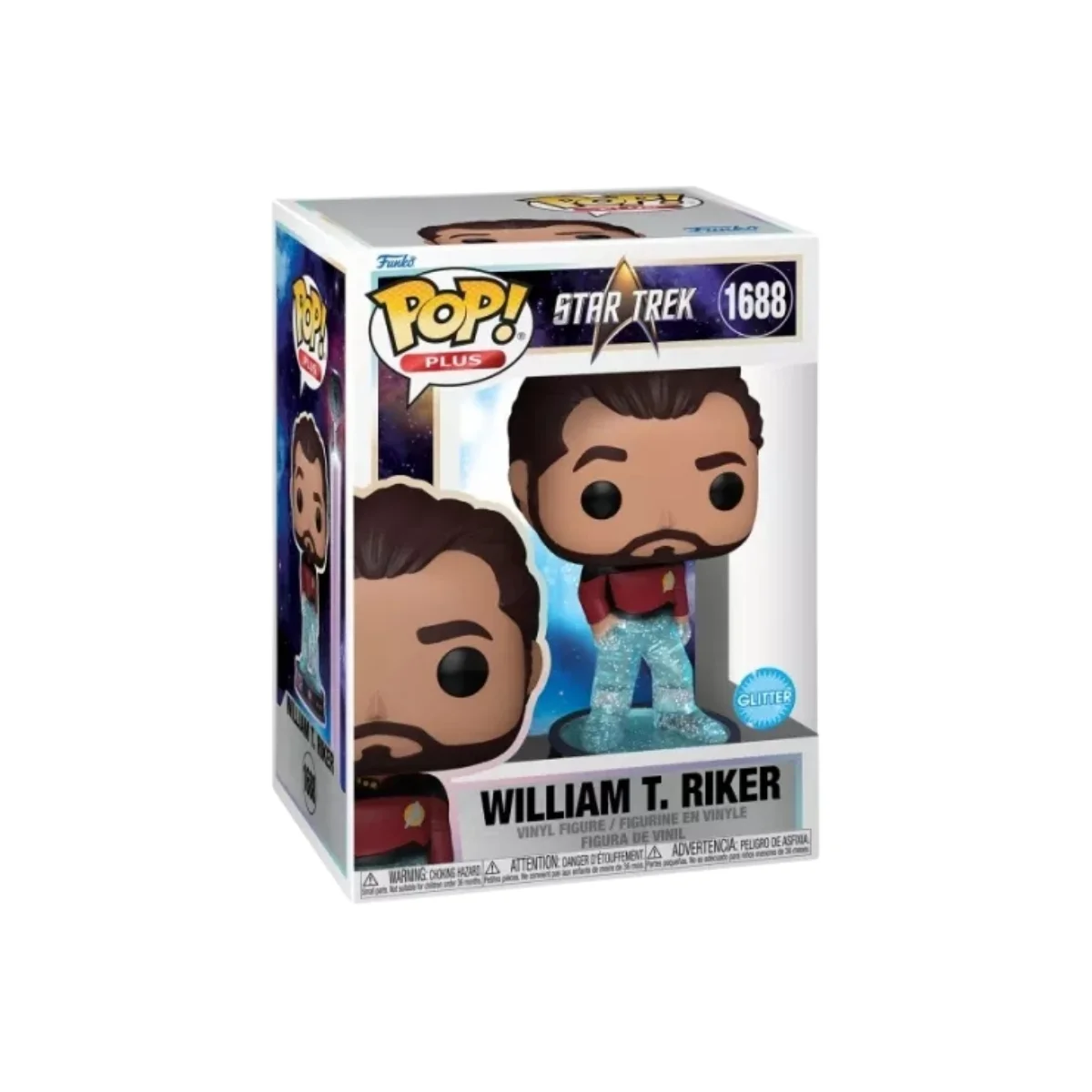 Funko William T. riker. Si eres de los que no se pierden una misión del USS Enterprise, prepárate para recibir en tu estantería a uno de los oficiales más carismáticos y admirados de la saga: el Funko POP! William T. Riker (Glitter) – Star Trek #1688. Este Pop! forma parte de la edición especial Glitter, con un acabado brillante que resalta aún más la elegancia y fuerza del icónico primer oficial.